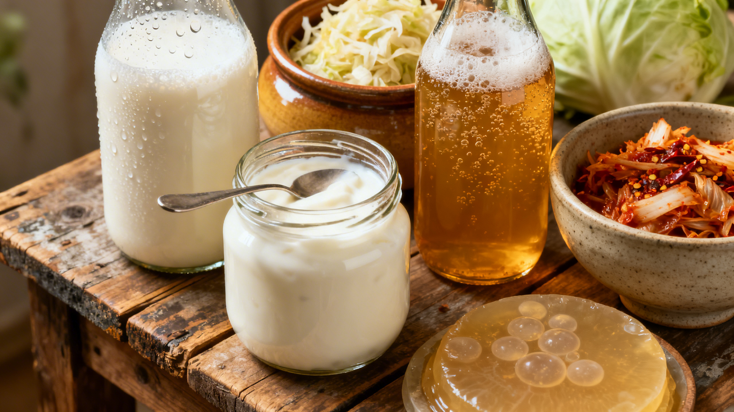 Les humains consomment des aliments riches en micro-organismes bénéfiques depuis des siècles, sans forcément le savoir. Lait fermenté, kéfir, choucroute, miso, kombucha — autant de préparations traditionnelles qui reposent sur l’action de bactéries vivantes, transmises de génération en génération.